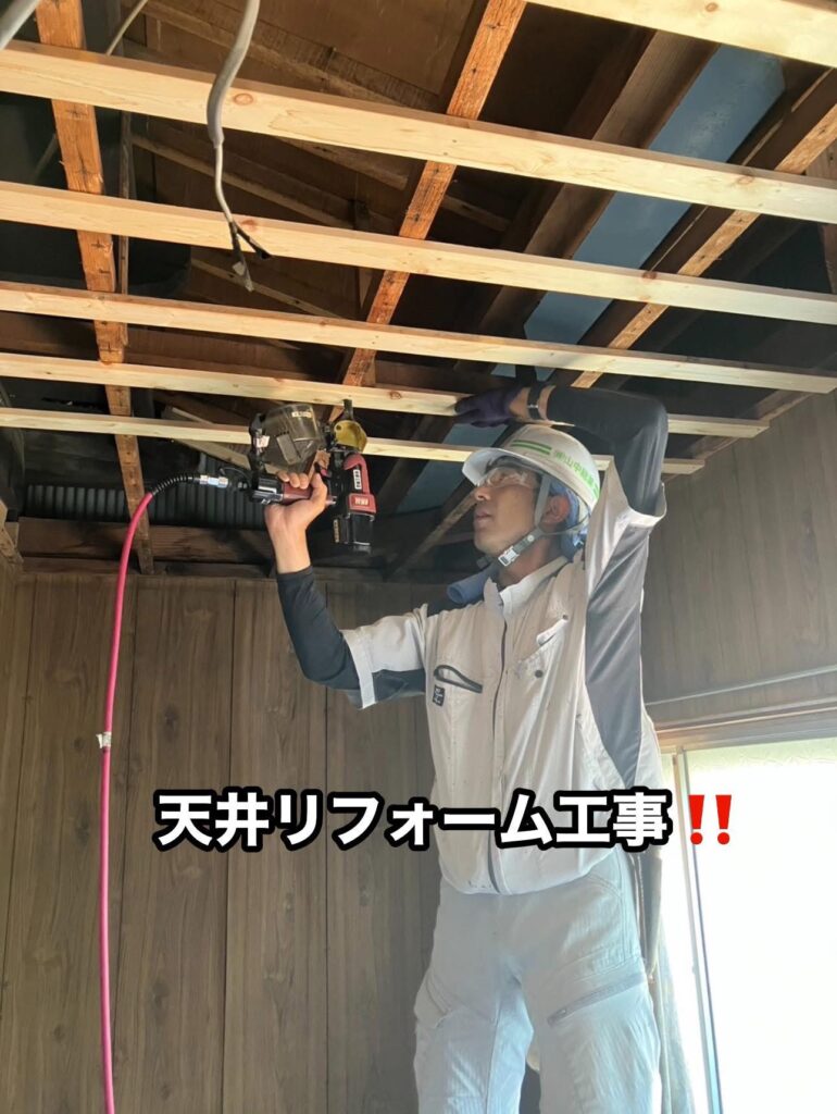 【天井リフォームでお部屋が明るく✨】 先日、雨漏りで傷んでいた天井ボードを新しく張り替えました♬屋根の板金を修繕したあとの工事で、室内もすっかり綺…